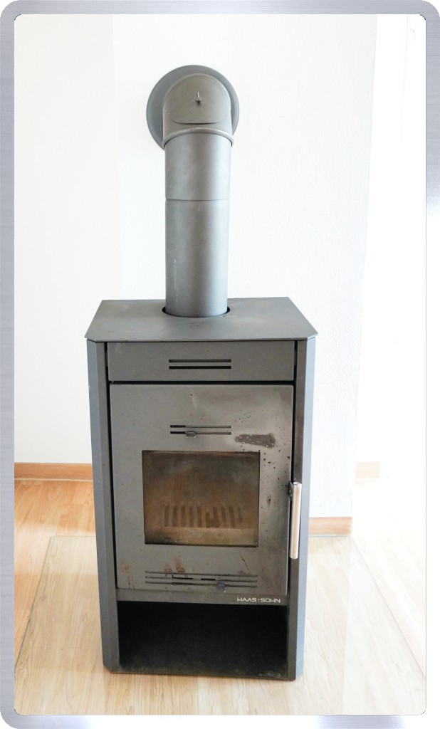 Wohnung hat einen schönen hellen Wohnbereich mit gemütlichen Holzofen und Zugang zum Balkon.
