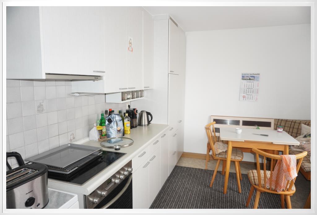 Die separate Küche ist mit Einbauküche und Essplatz.
